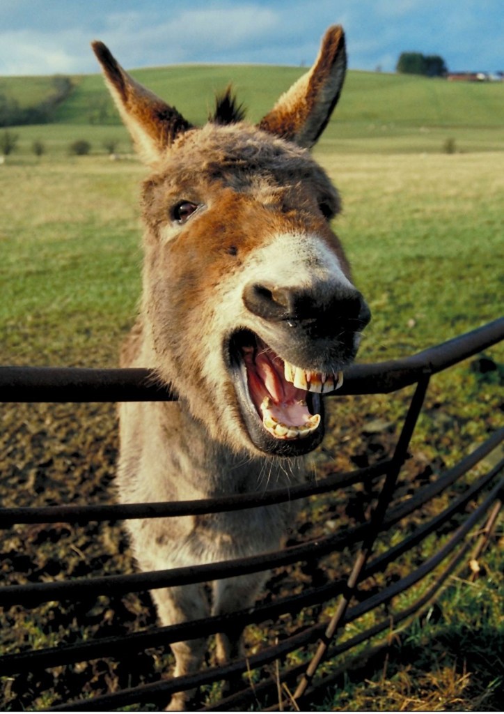 How about that reputation for stubbornness?  Well, donkeys are generally less trusting of humans than horses and can’t be so easily persuaded to do something; however, once their trust is earned and a bond established, they are affectionate and faithful.  Indeed, donkeys are thought to be intelligent chaps, boasting excellent memories and the ability to engage in playful activities.  However, if they’re wanting to defend themselves, then they’ll pull out the biting and kicking routine (you don’t want to be on the wrong end of that!!)  Although, that said, donkeys can have a remarkably calming influence, particularly on horses – they will give comfort and support to newly weaned foals and will also provide succour to help sooth skittish horses.