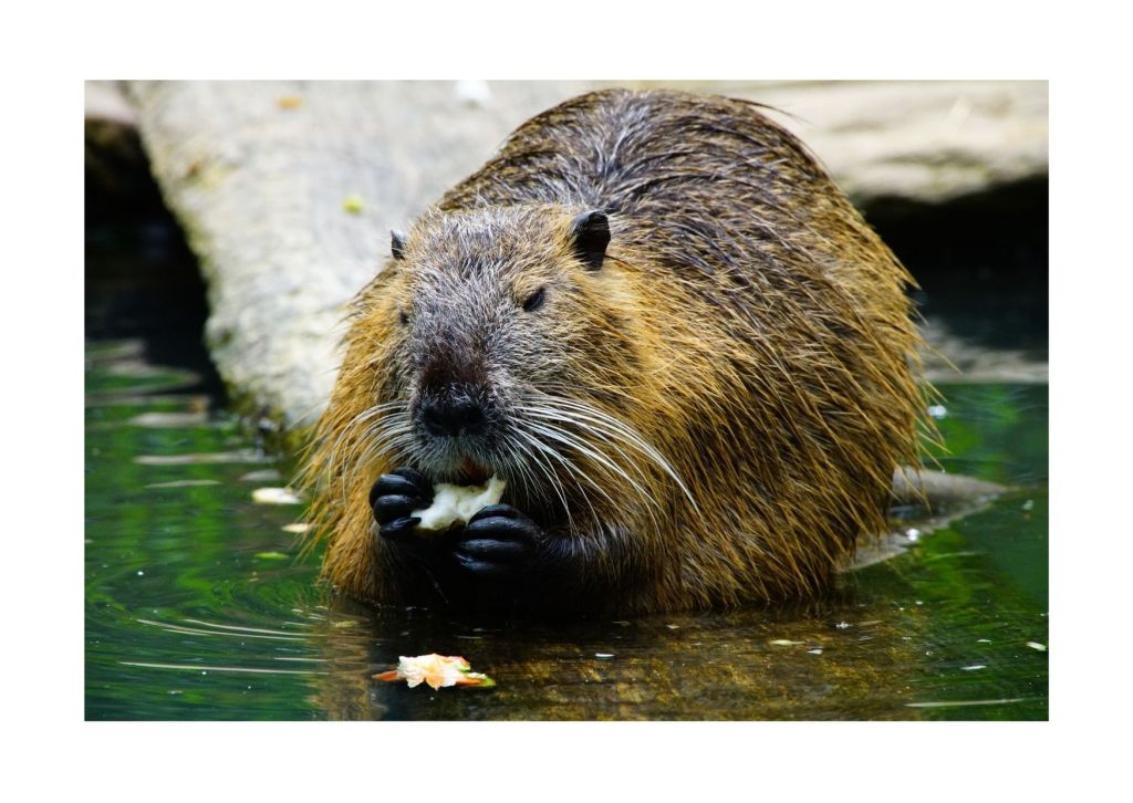 Beavers are herbivores and enjoy munching on bark and aquatic plants, including grasses. They live in freshwater environments such as rivers, streams, lakes and large ponds and of course trees feature significantly in their lives.