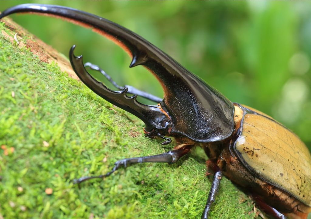 Hercules – the Hercules beetle is part of the Rhinoceros beetle family and it’s easy to see why they’re so called when you catch sight of their astonishing horn (males only) which, as per their cousins, is used for fighting for their females. These critters can measure up to 16cm (6 inches) (including their horn) and are also accomplished weight lifters, but can’t quite compete with their Goliathan counterparts. They are night lovers, coming out after dark to feed on fruit (might give you a bit of a surprise on your evening stroll!)