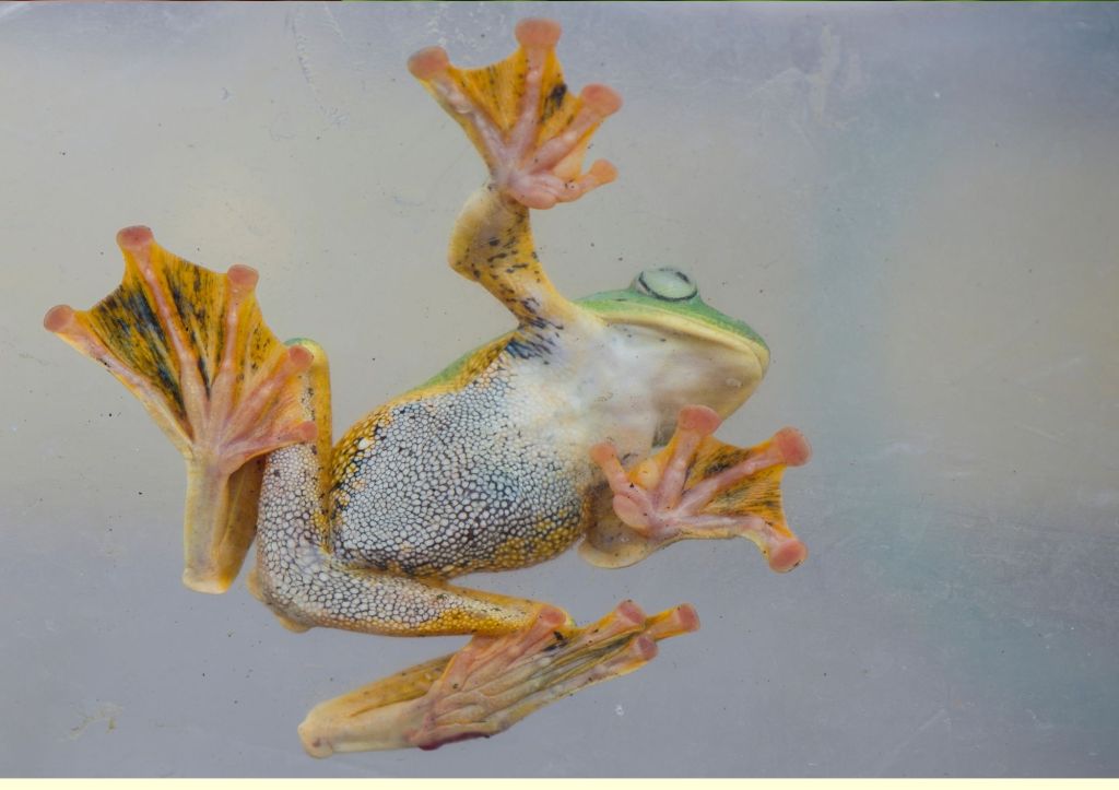 Yep these guys are a diverse bunch – there’s even a flying frog (eg Wallace’s Flying frog) which has specially adapted flaps between its toes that allow it to glide through the air up to 15 metres! (about 50 ft).