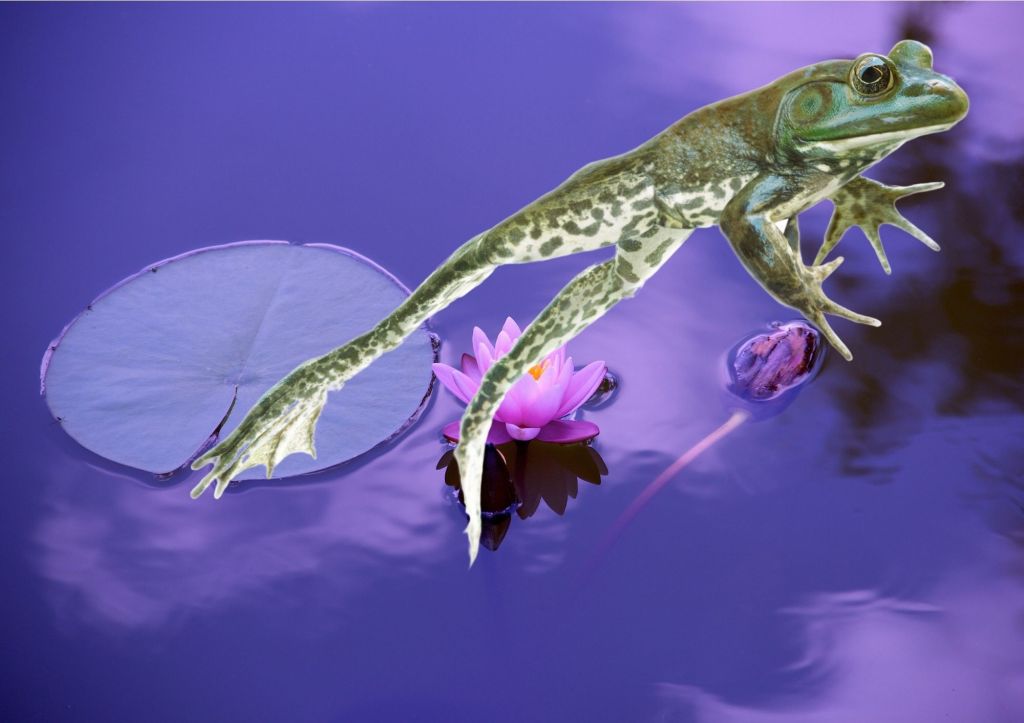 As we know, frogs are amphibians (cold blooded critters) – living part of their lives in and part out of water. They can be found all over the world, only giving a wise swerve to the extreme artic regions. Their official family name is Anura, which is ancient Greek for tail-less, referring to their lack of rear appendage.