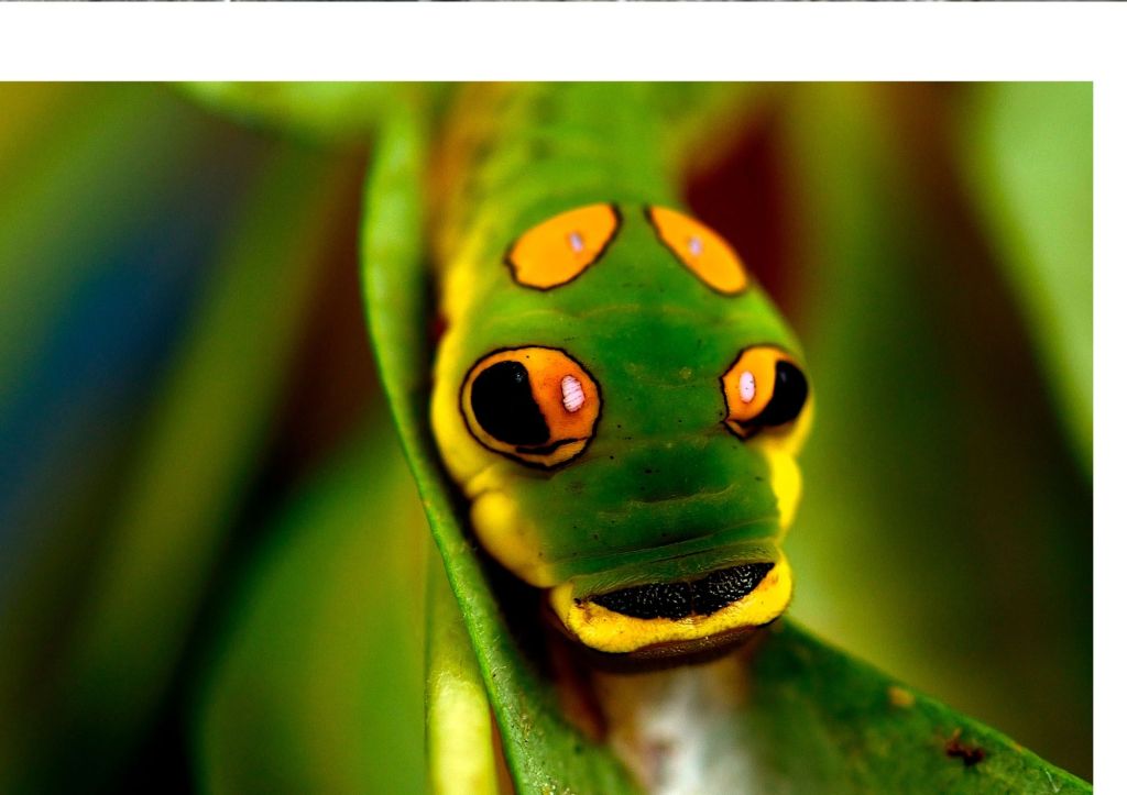 Even youngsters can get in on the act – the Hawk moth caterpillar has created quite a costume for itself – it bears an uncanny resemblance to a viper snake! This incredible disguise helps to keep it safely away from predators, to allow it to grow onto adulthood.