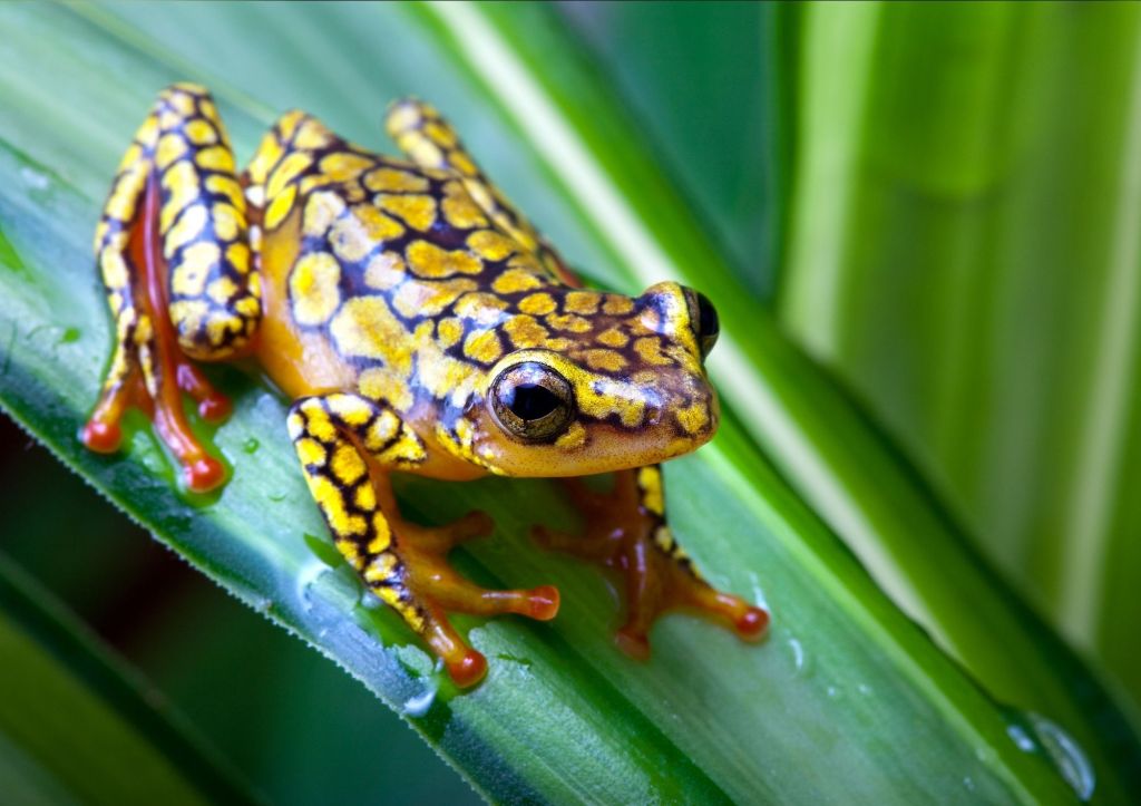 You may think that with a name like the Harlequin frog, this amphibian might be a bit of a clown – but it is in fact top of the bill when it comes to deception! It can turn itself into resembling other poisonous frog species, which is a very neat trick!