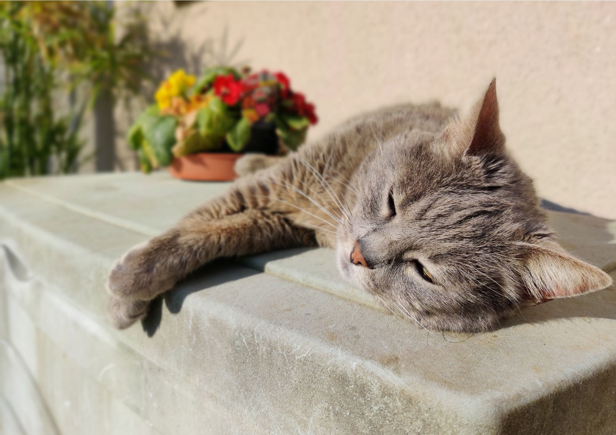 Pausing to enjoy the feel of the glorious summer sun on my face, I suddenly noticed that I wasn’t the only one enjoying the sunshine – a blackbird had decided it would indulge itself in a spot of sunbathing and had laid on the grass, spread out its wings and tail feathers, to gain maximum surface area coverage, and was basking in the warmth. Given the fact that it’s black (a colour that draws in the heat) I did wonder if it was feeling quite sane!
