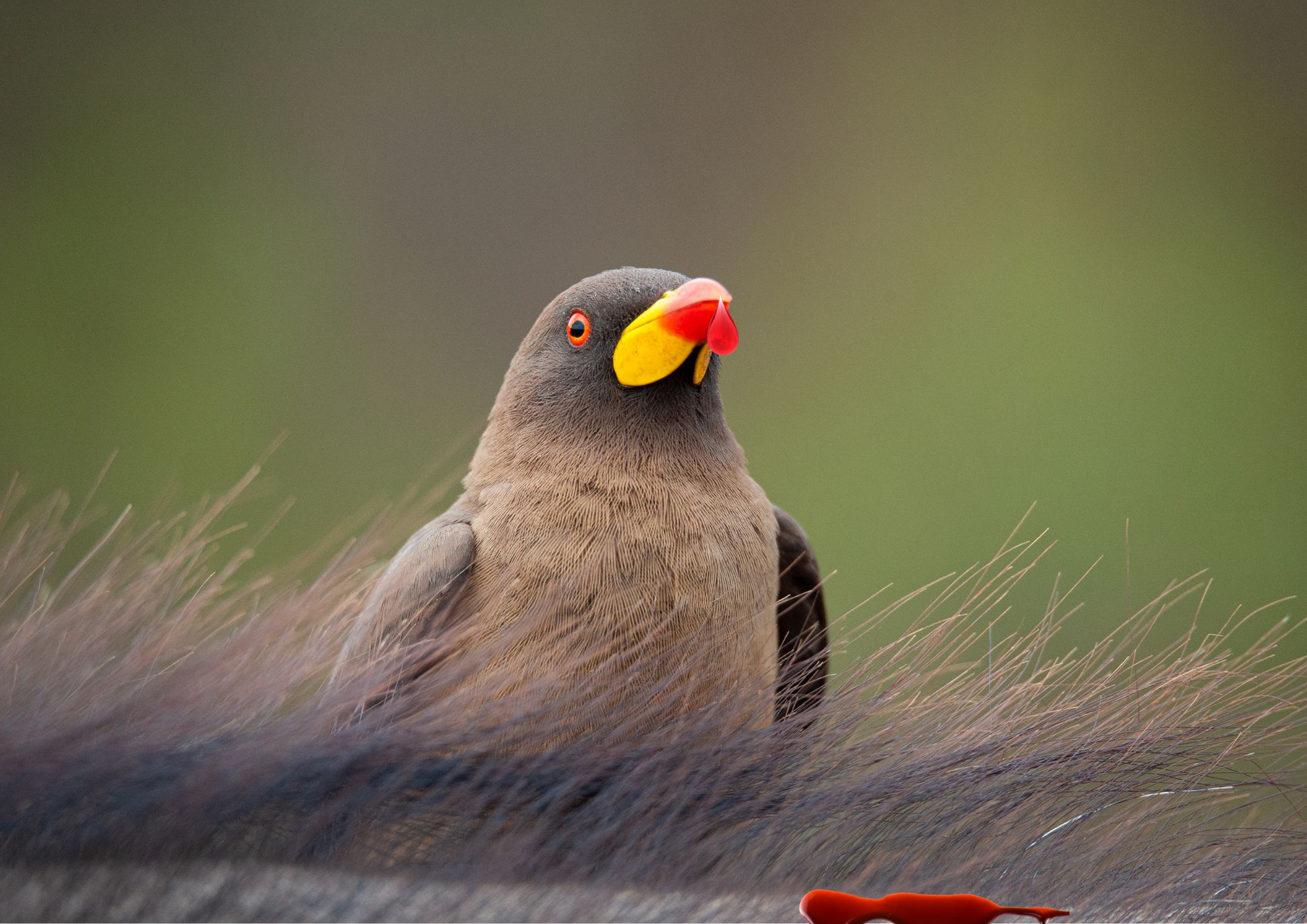 Oxpeckers happily give hippos, buffalos and even giraffes, a good once over, by picking off any sneaky blood-sucking stowaways that are being bothersome. Their favourite treat are tics because they’re rather partial to the odd drop or two of blood. Sometimes this means they will take a sneaky sip out of any unhealed wounds they come across! Most hosts will tolerate this, realising that a sanguineous tip is a small price to pay for a full body blitz.
