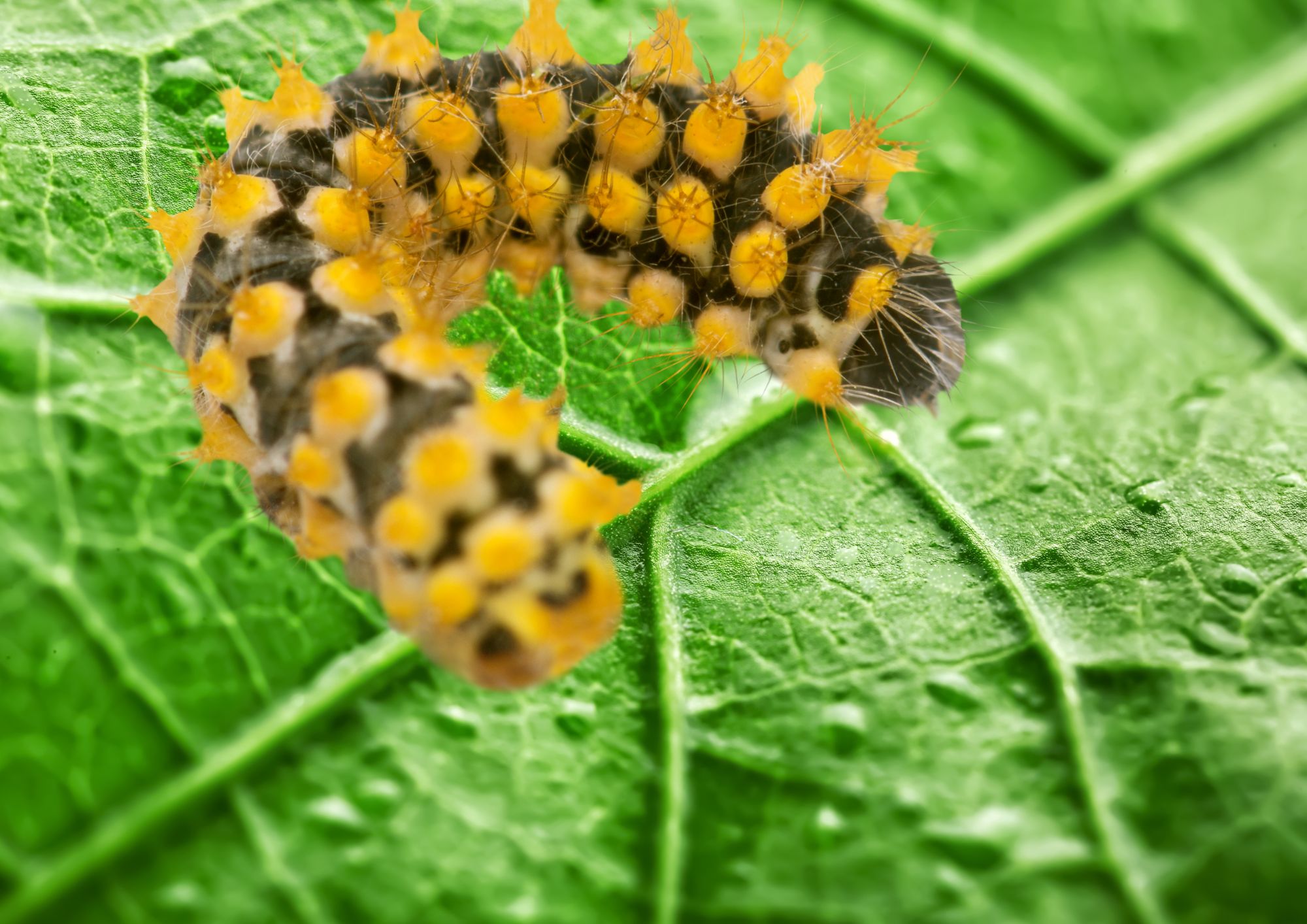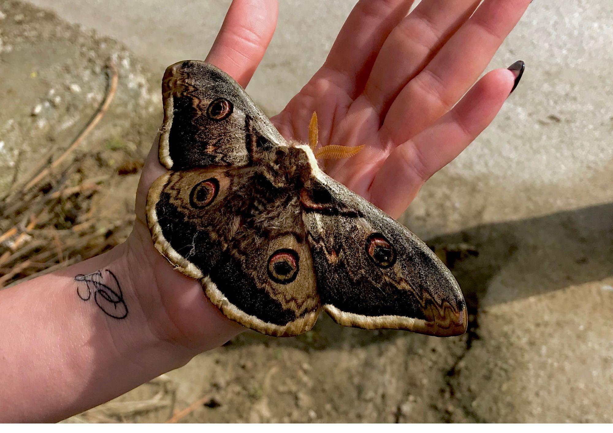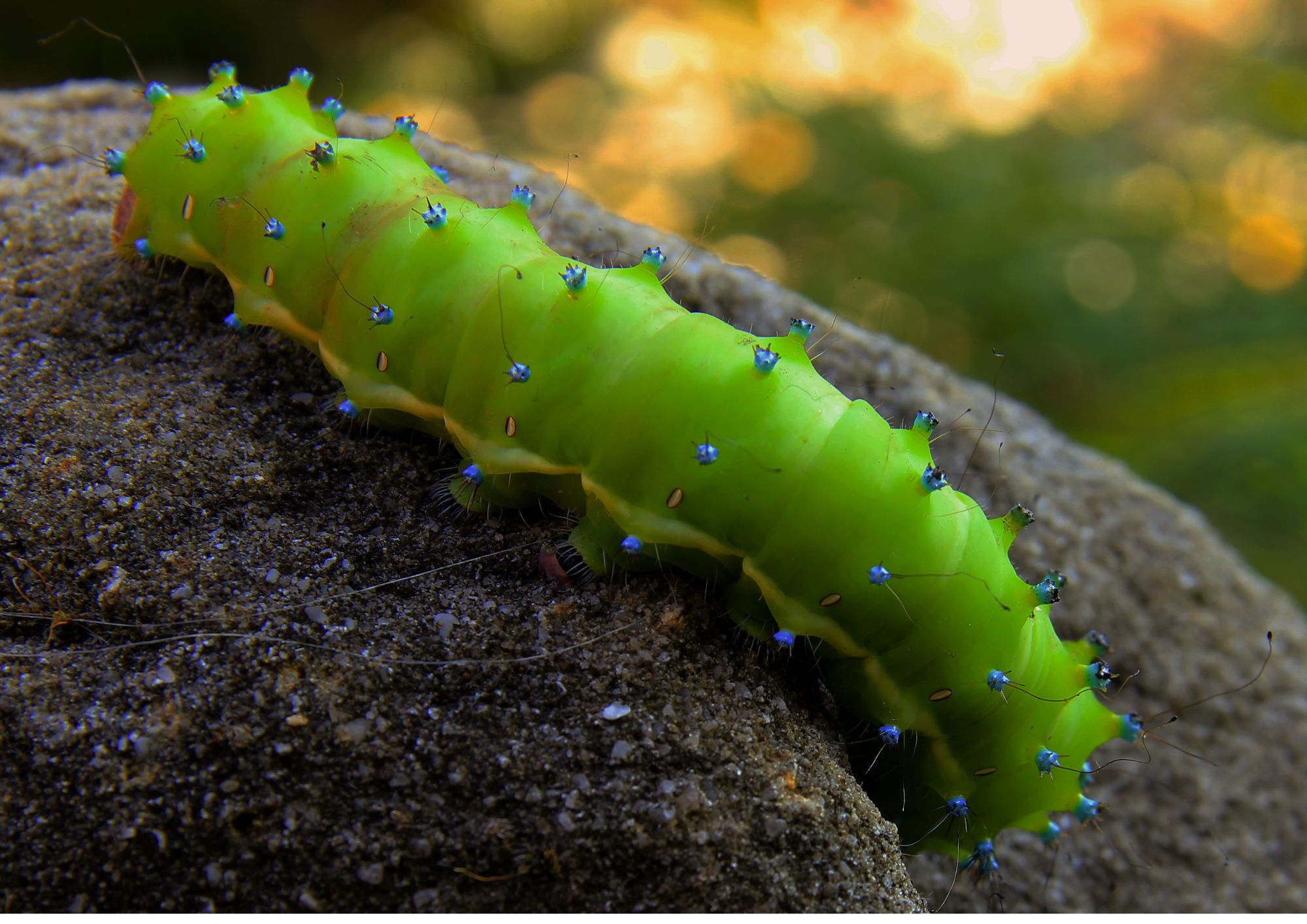 Another lepidopteran lovely is the peacock moth. They enjoy warm climes and dwell in sunnier spots. That iconic eye is again the main feature of their winged patterns, beautifully displayed on the largest moth wingspan in Europe. They’re not fussy feeders and will sample many types of trees, producing chameleon caterpillars that go from black to brown to bright green with blue spikes! The moth’s delightful decoration caught the attention of both Aristotle (sometimes being called Aristotle’s silkworm) and Vincent Van Gogh, who produced a sketch or two of these good-lookers.