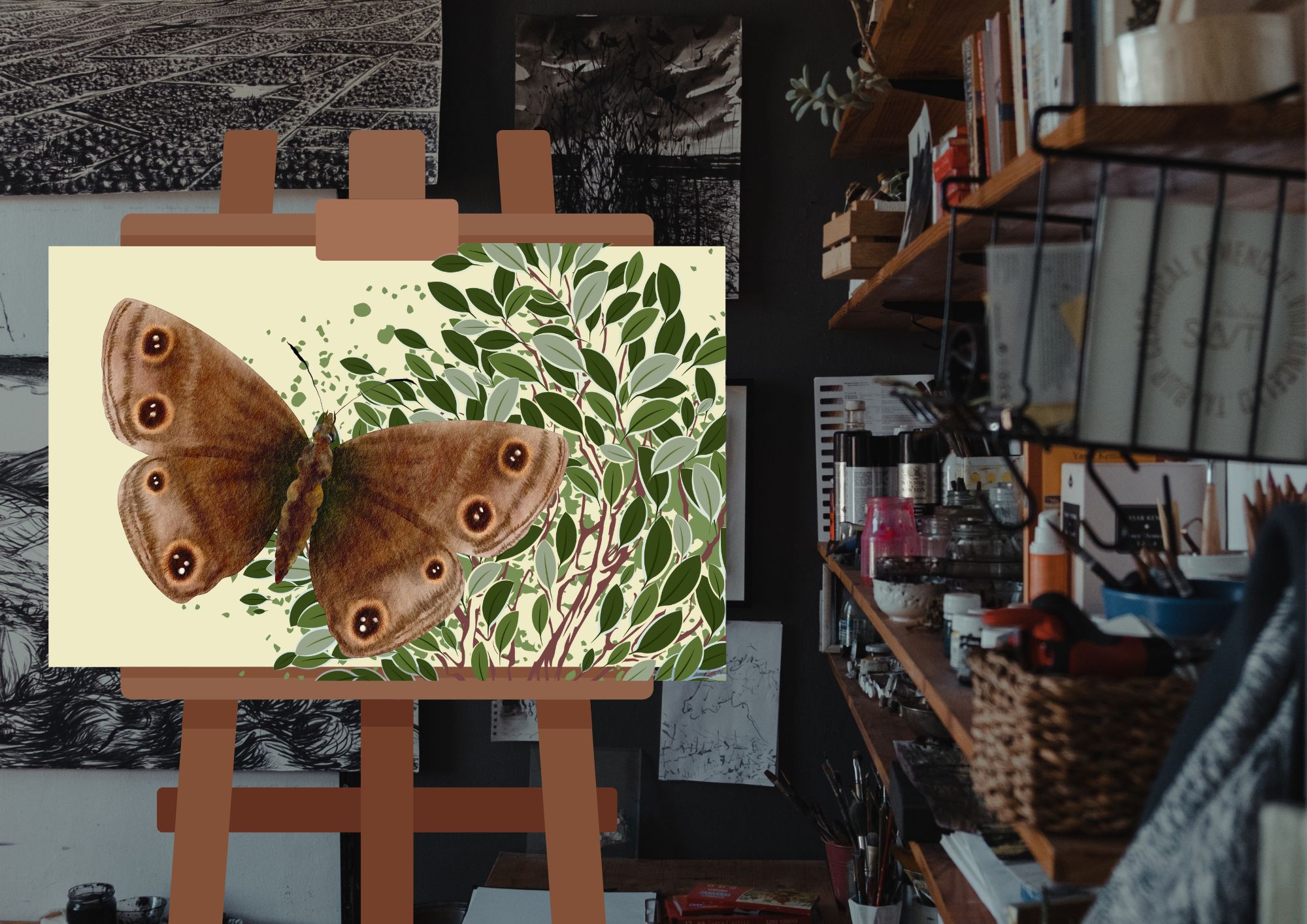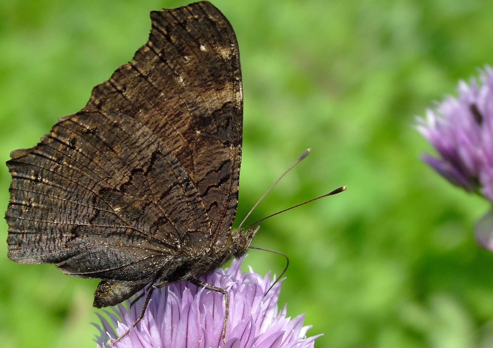 Another fantastically adorned aeronaut is the peacock butterfly, whose wings are painted with big eyes, mimicking that famous peacock pattern. Peacock butterflies can hide their light under a bushel, as they are masters at blending into the background, by closing up their wings to show just a plain dark underside – but don’t go thinking they’re timid, because these critters cherish their own space and will fiercely defend their home turf, hissing with their wings to ward off the competition!