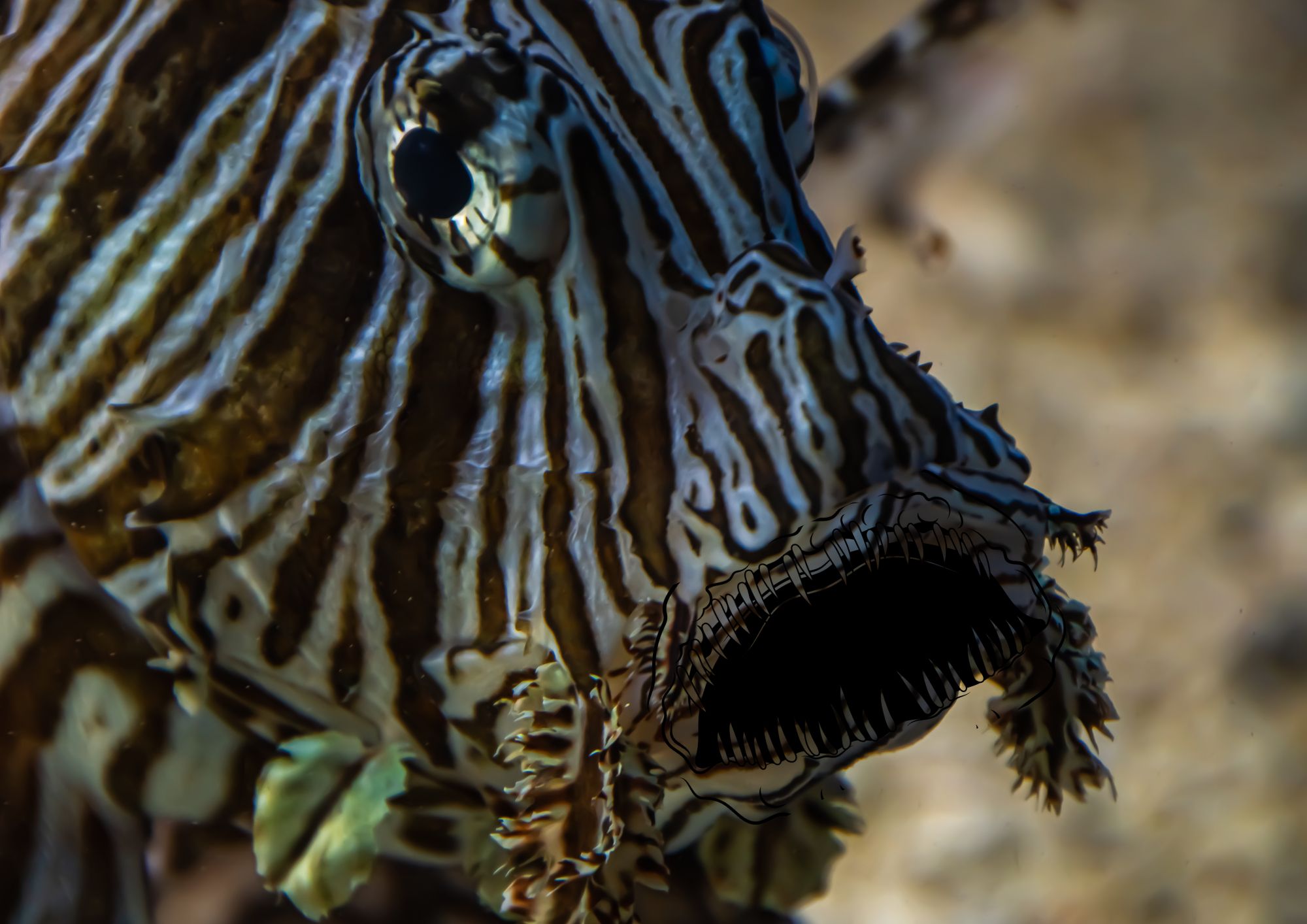 Nothing to see here….or is there? Suddenly, out of the depths of the sea emerges a set of razor sharp teeth, which you’d probably feel before you saw! The ferocious dragon fish has teeth that are practically see-through – set inside a dark mouth, this means that you literally wouldn’t spot these needle-like incisors before they’ve laid into you! Apparently, it’s all in the mix of dentine and enamel which helps to make these scary structures hide in plain sight!