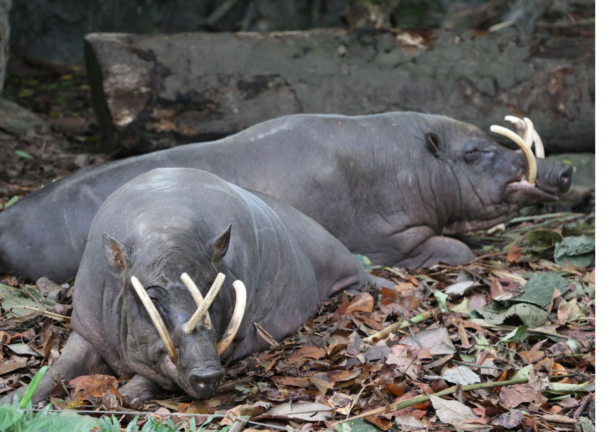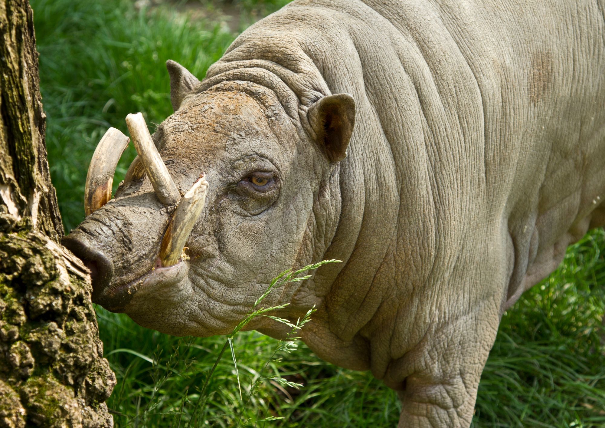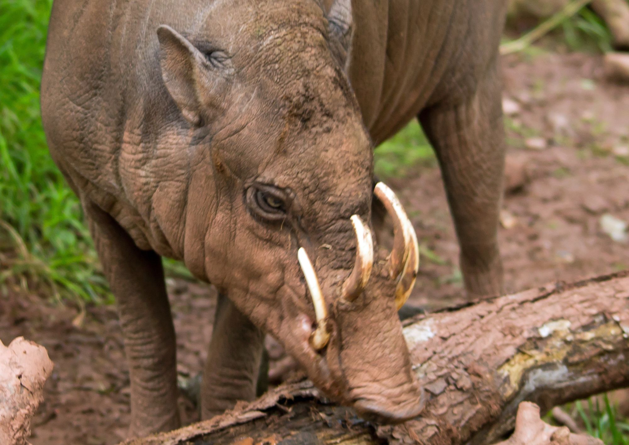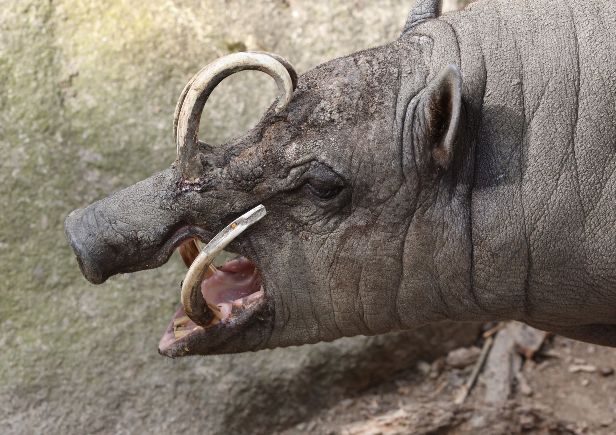 What do you get if you cross a pig and a deer? A Babirusa of course! Babirusa have really gone to town on their teeth. Why settle for one pair of impressive curving canines, when you can have two! But where to put them…how about up through the roof of your nose! This ostentatious orthodontistry might be the envy of many a swine, but they must make sure they grind down these appendages regularly, otherwise they could find that they’ve taken a bite out of themselves!