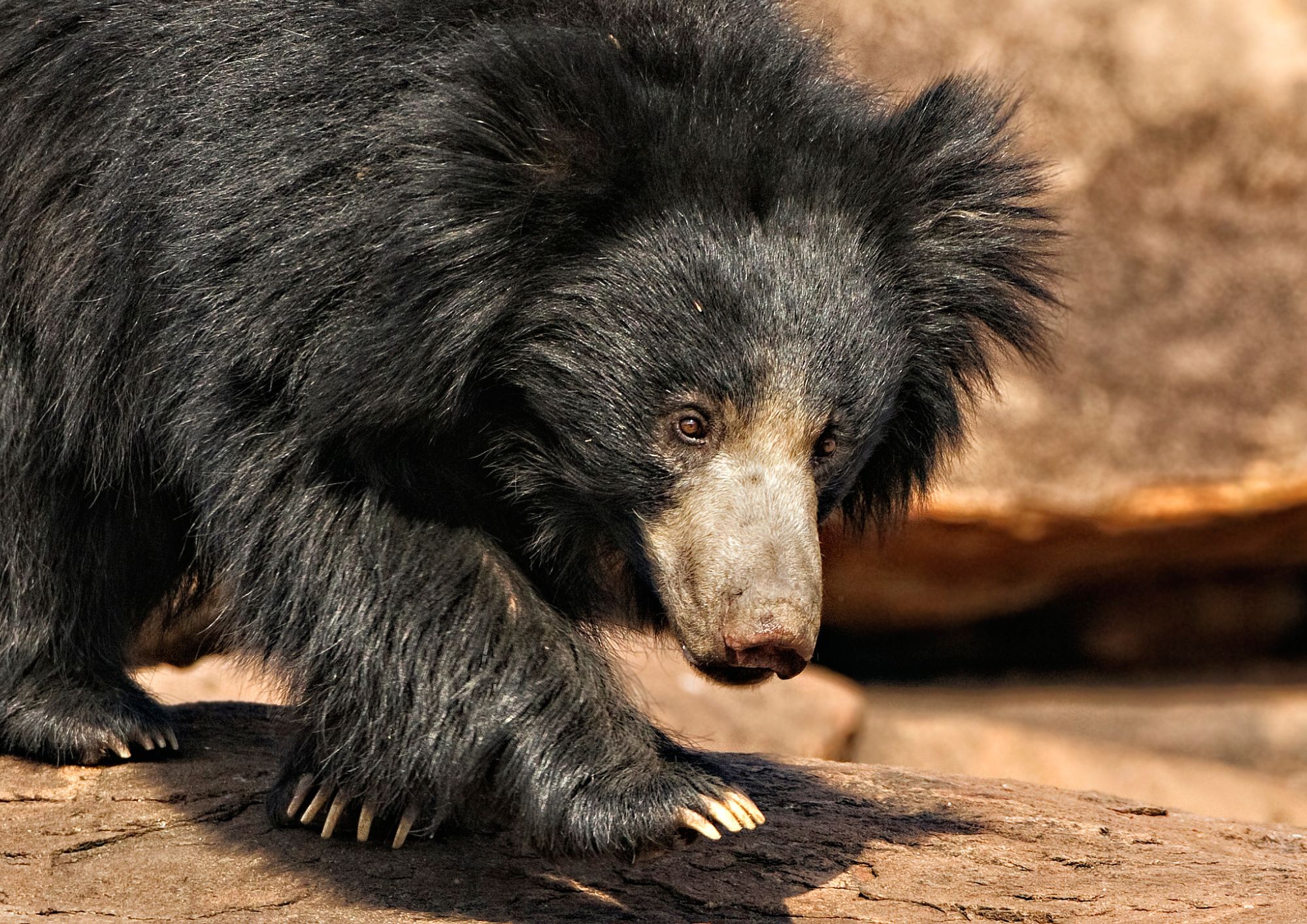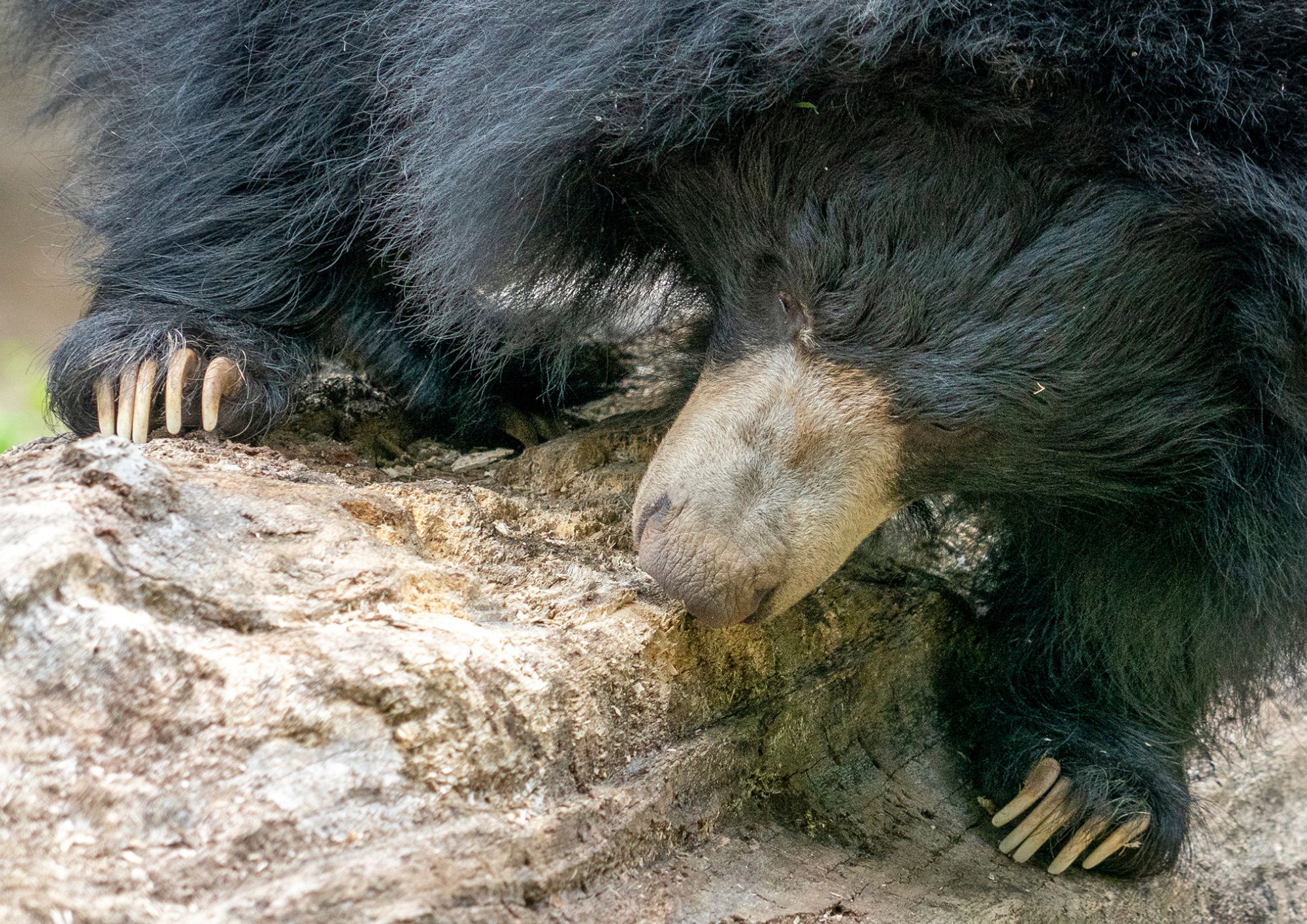 You wouldn’t want to be on the wrong end of any grumpy bear – especially not a sloth bear, who has far longer claws than the average bear.  It uses these awesome nails to dig for its insect supper.  As it wants to be alone, it will also use them to dish out the odd unlucky swipe to anyone foolish enough to come bothering it.