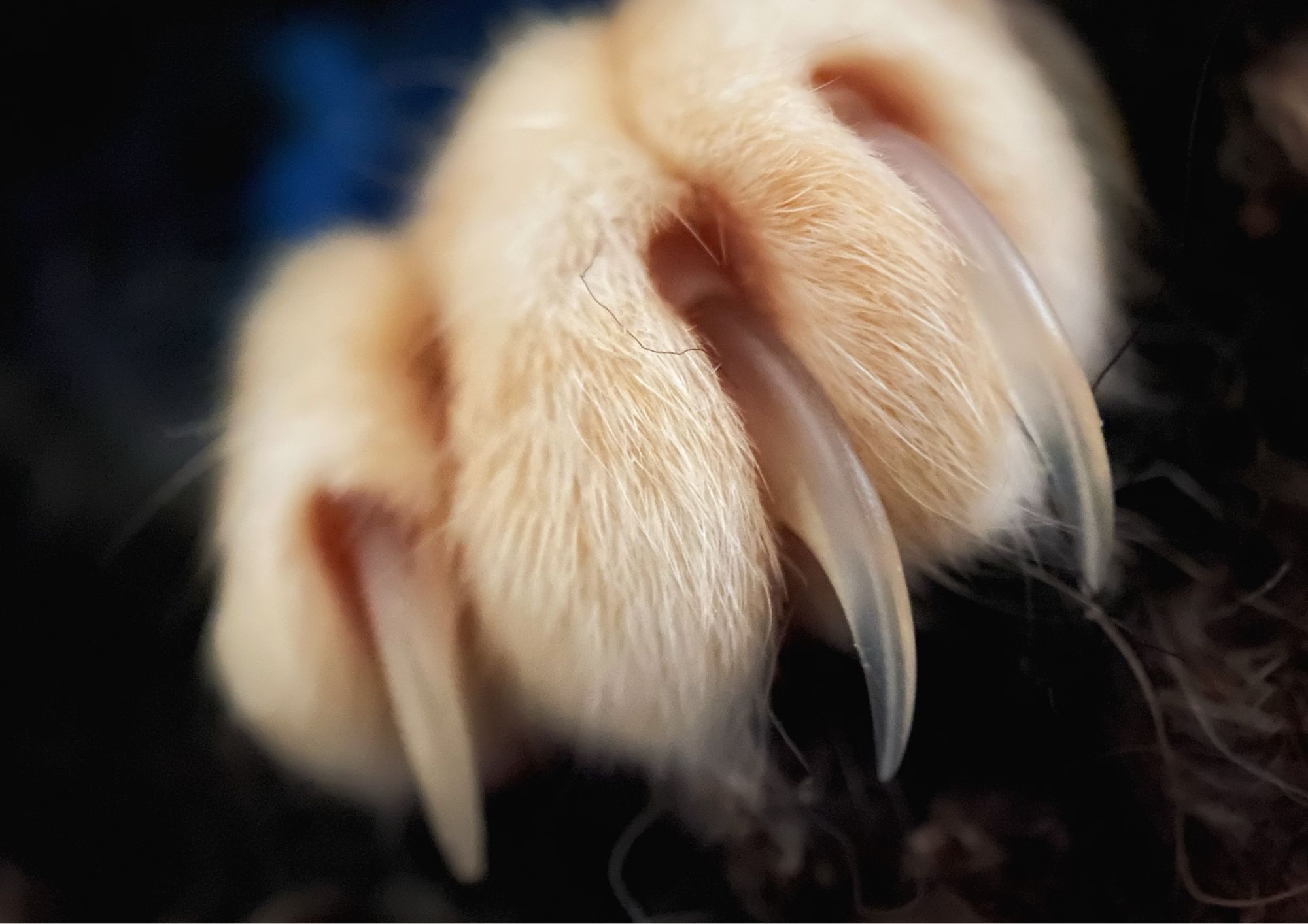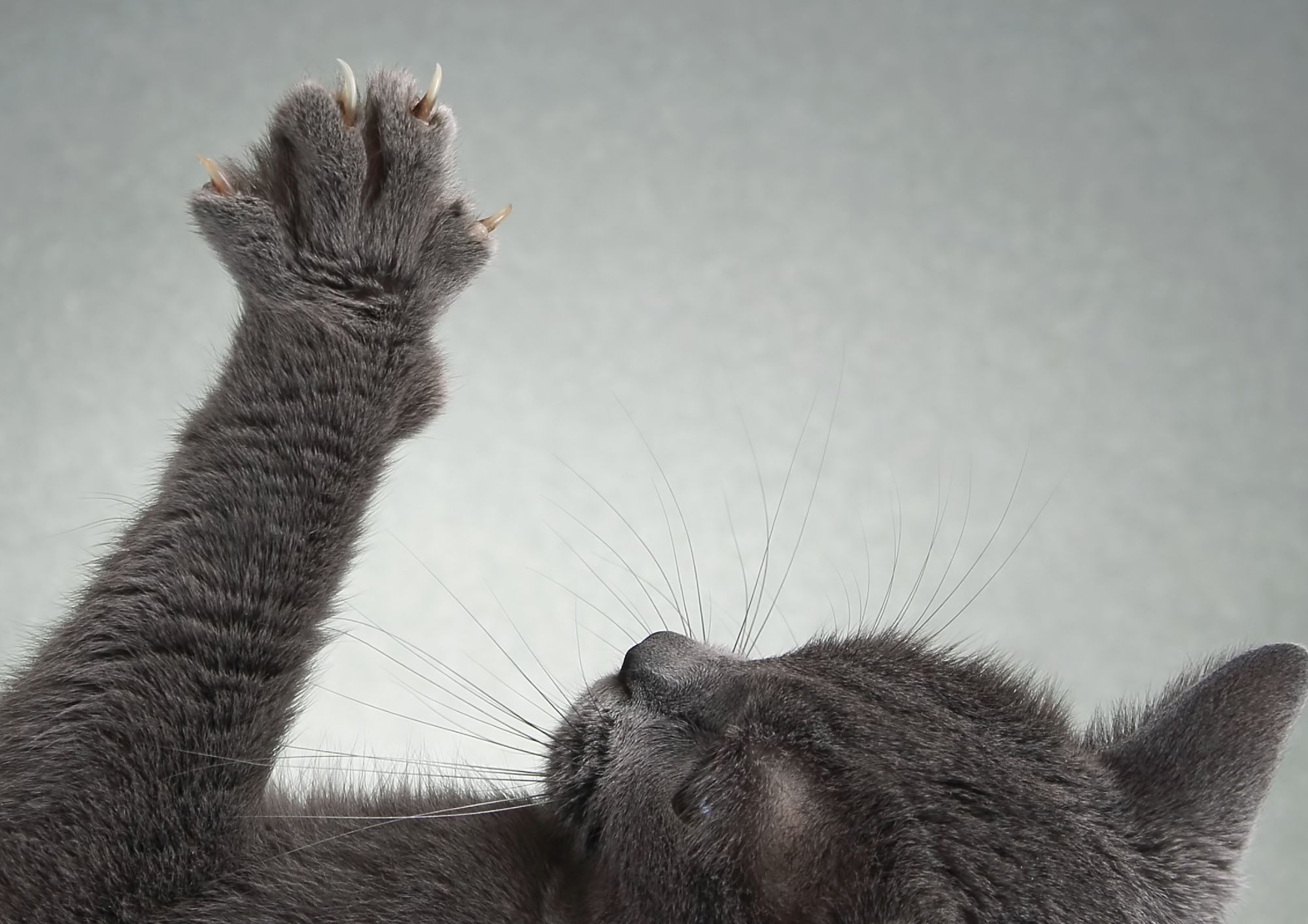 Now you see ‘em, now you don’t!  Cats keep their claws under wraps, padding around quietly on their tippy toes; but when needed, they can flex their muscles and their armoury appears!  Flick out those feline pincers when you want to shin up a tree or carve out a creative design on the wooden furniture!