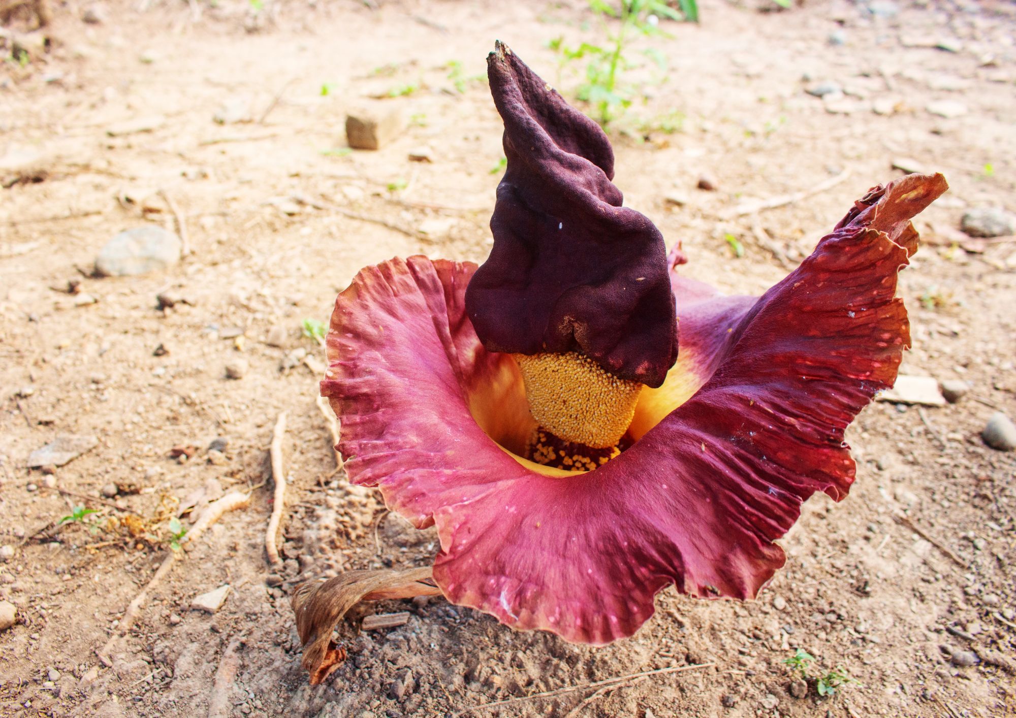 Ah, the pleasing perfume of fragrant flowers is something to savour; but don’t go sniffing at the corpse flower – unless you enjoy the smell of rotting flesh that is! This mysterious plant only flowers once every 7 years and when it does, it goes to the lengths of creating an utterly offensive aroma to attract all manner of carnivorous insects – they are unwittingly attracted to the flower, thinking there is a meal in the offing. Searching for their grub, they wander all over the plant, unknowingly pollinating it, before taking off in disgust at the lack of dinner. Whilst its fruits might look sweet and tasty, they are, in fact, poisonous; only Hornbills seem to be able to eat them without any ill effects, hopefully going on to spread the seed of this rare flora.